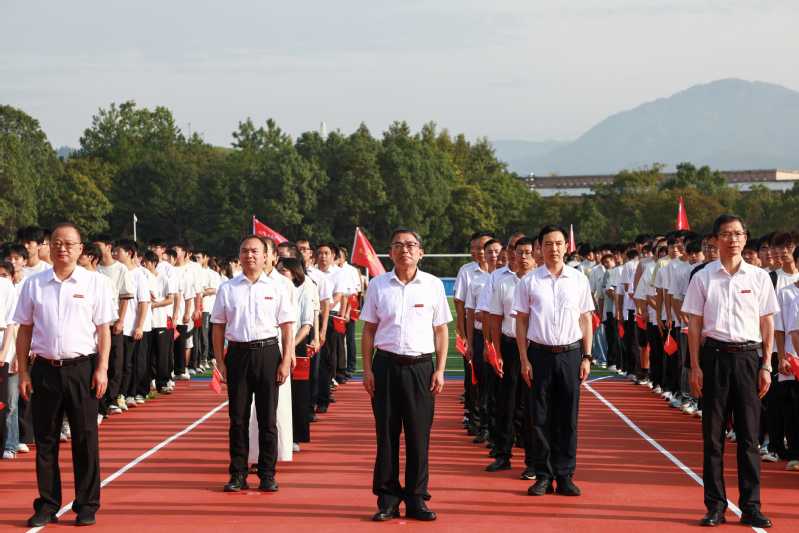 10月1日,我校在屏山体育场隆重举行2025年国庆升旗仪式,校领导庄祥生、吴承祯、梁方、杨昇、廖斌、郑细鸣与在校千余名师生参加活动,共同庆祝中华人民共和国成立76周年。
