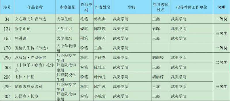 为弘扬中华优秀传统文化,提高规范汉字书写水平,今年6月开始,福建省教育厅举办了福建省第七届中华经典诵写讲大赛“笔墨中国”汉字书写大赛。我校人文与教师教育学院师生踊跃报名、积极备赛,凭借扎实的书法功底和特色的艺术表现力,经过线上评选和现场决赛,斩获多个奖项。