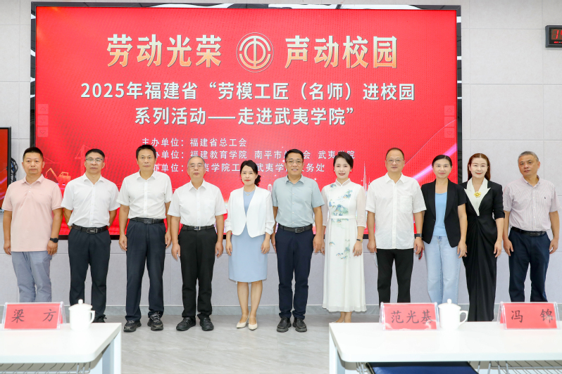为深入学习贯彻习近平总书记在全国劳动模范和先进工作者表彰大会上的重要讲话精神,弘扬劳模精神、劳动精神、工匠精神与教育家精神,发挥劳模名师的示范引领作用,10月16日,由福建省总工会主办,福建教育学院、南平市总工会、武夷学院承办,武夷学院工会、武夷学院教务处协办的“劳动光荣·声动校园——2025年福建省‘劳模工匠(名师)进校园’系列活动”在我校举行。福建省教科文卫体工会工作委员会主任郭立新,福建省教科文卫体工委二级调研员左修坤,福建省教科文卫体工委副主任阳先辉,福建教育学院党委委员、副院长张志刚,武夷学院党委副书记、工会主席梁方出席活动。