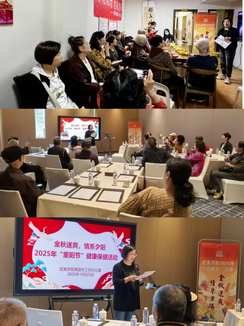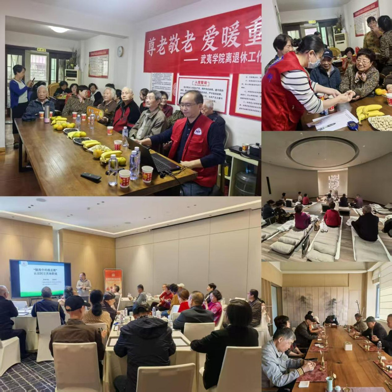 邀请南平市第一医院医护专家到延平区老年活动中心开展健康保健活动。大力宣传老年人健康管理、老年健康与医养结合服务、中医药健康管理等国家基本公共卫生服务政策,普及老年常见病和慢性病防治、伤害预防、应急救助、心理健康、生命教育等健康知识,引导老年人保持健康生活方式。联合旅游学院康复治疗系,组织离退休教职工走进深业集团武夷山云水堂康养中心聆听健康讲座,参观体验康养项目,感受高品质康养服务的魅力,让老同志在轻松愉快的氛围中感受康养文化的博大精深,提升我校离退休教职工对新型养老模式的认知。