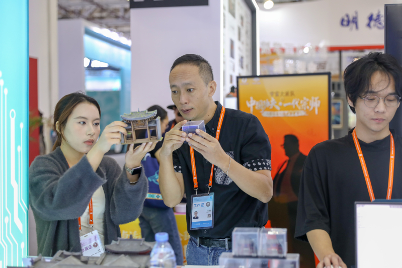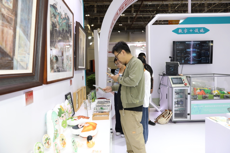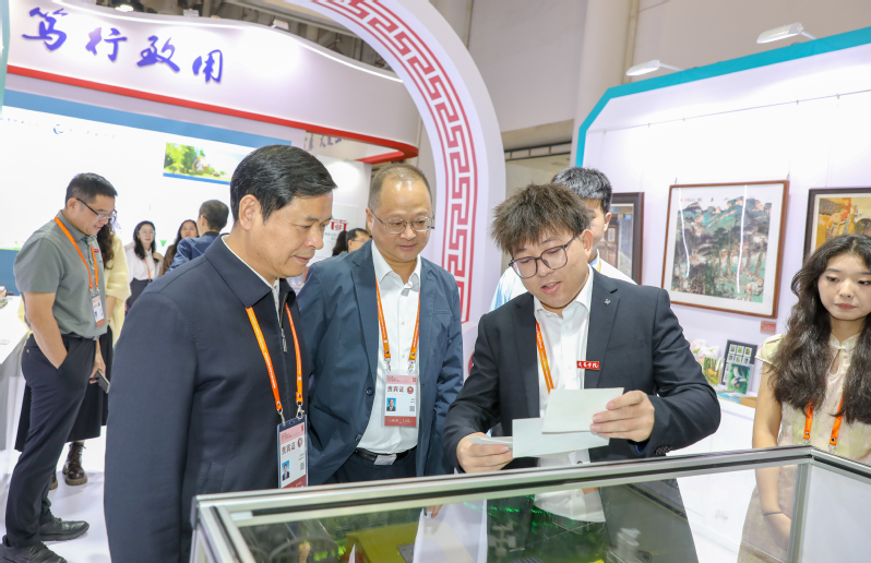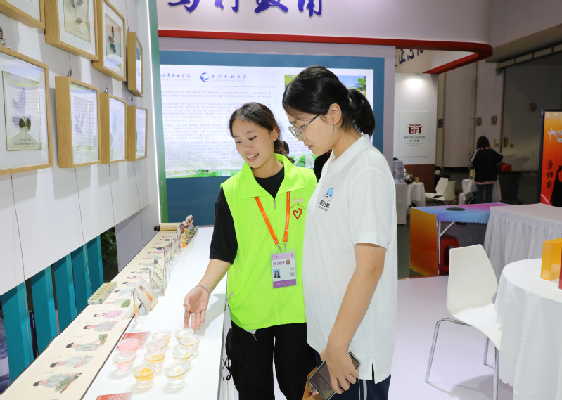 此次我校展区重点展示了茶、旅游、艺术文创作品和生态、新型工科科创成果,其中文创展品包括品牌形象设计、包装设计、书籍装帧设计、模型、中国画、岩彩画、漆画、木板坦培拉等,科技展品包括“数字+设施”物联网虚实融合可视化智慧农业平台、红方中国风岛数据图谱、美丽乡村智能驾驶舱、茶树鲜叶永久性标本、代塑用柔性薄型竹单板、竹加工下脚料制备纤维素黏胶液3D打印系列产品等;同时,我校美术作品《窗影织年》、陶瓷设计作品《莫高雅韵》、竹制设计作品《竹械纪元·翎动》《竹行天下》以及陶艺作品《盛放》《丝网的碰撞》等6项作品入选海峡两岸高校融合展区,吸引了众多领导嘉宾和游客前来参观交流和体验。