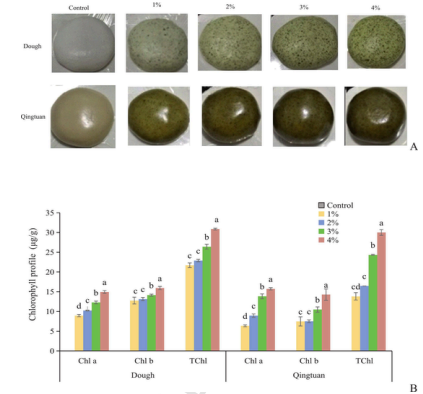 青团作为一种承载中华饮食文化精髓的传统糯米淀粉凝胶食品,因其独特的色泽、口感与风味备受喜爱。然而,在现代加工过程中,青团常面临色泽易褪、口感下降及活性成分流失等问题,限制了其产品的品质与功能化提升。如何在保留传统风味的基础上改善青团的质构和营养价值,成为食品科学领域的重要研究课题。近期,我校茶与食品学院孙辉博士团队以马兰草粉(KIP)为研究对象,系统评估其在青团水热加工过程中的品质调控作用。研究发现,富含多酚与膳食纤维的KIP可以通过生物活性组分—淀粉网络对叶绿素的包埋作用,显著提高青团的色泽稳定性。在添加量为2%时,青团的咀嚼性达到30.41 N·mm,感官接受度评分高达7.4分,其优势与微观结构优化、短程有序结构增加及结晶度降低密切相关。在营养功能方面,KIP的多酚等活性成分共同形成物理屏障,并通过抑制淀粉水解相关酶活性,有效降低淀粉的消化率。同时,研究证实适量添加KIP可在加工后保留更多黄酮等活性成分,进一步提升青团的功能性价值。这种缓慢消化与活性成分保护的双重机制,为传统食品赋予了潜在的健康促进作用。通过精密的微观结构分析、理化性质测试及营养指标评估,研究团队揭示了KIP在水热加工过程中与糯米淀粉的协同作用机理,明确了其在改善质构、提升感官特性和增加功能活性的综合效果。