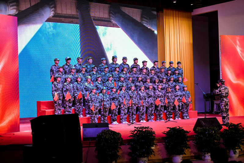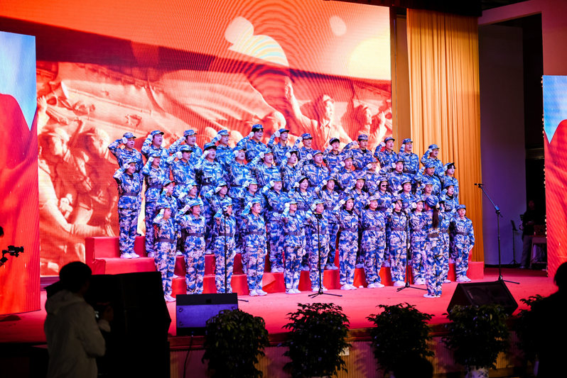 比赛在大学生武术协会带来的舞狮表演《醒狮腾云龙飞扬》中拉开序幕。雄狮腾跃,鼓点激昂,瞬间点燃了全场的热烈气氛。随后,各二级学院代表队依次登台,倾情演绎了《当那一天来临》《祖国不会忘记》《中国人民解放军军歌》《长征》《我的祖国》《红旗飘飘》《歌唱祖国》等多首红色经典曲目。歌声中既有对革命岁月的深情回望,也有对英雄先烈的崇高敬意,更传递出新时代青年奋发向上的精神风貌与使命担当。整场演出在大学生艺术团合唱队带来的《军歌联唱》中圆满落下帷幕,铿锵的节奏与恢弘的合唱将现场气氛推向高潮。