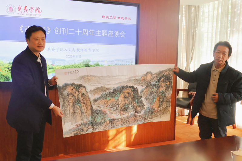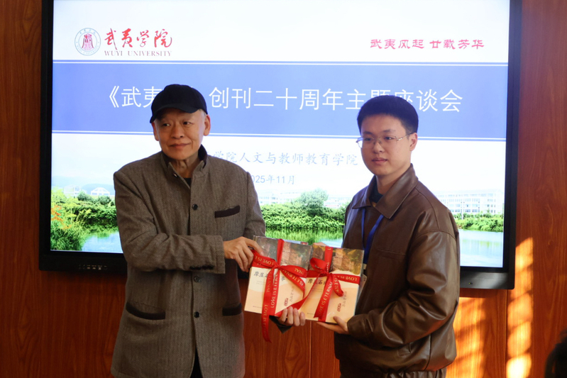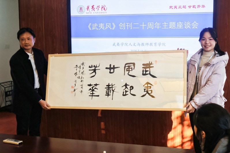 《武夷风》刊头字题写者徐良夫老师、南平市美协、武夷山作协分别向《武夷风》刊物赠送了书画作品表示祝贺。人文与教师教育学院向校图书馆赠送了《武夷风》历年刊物。