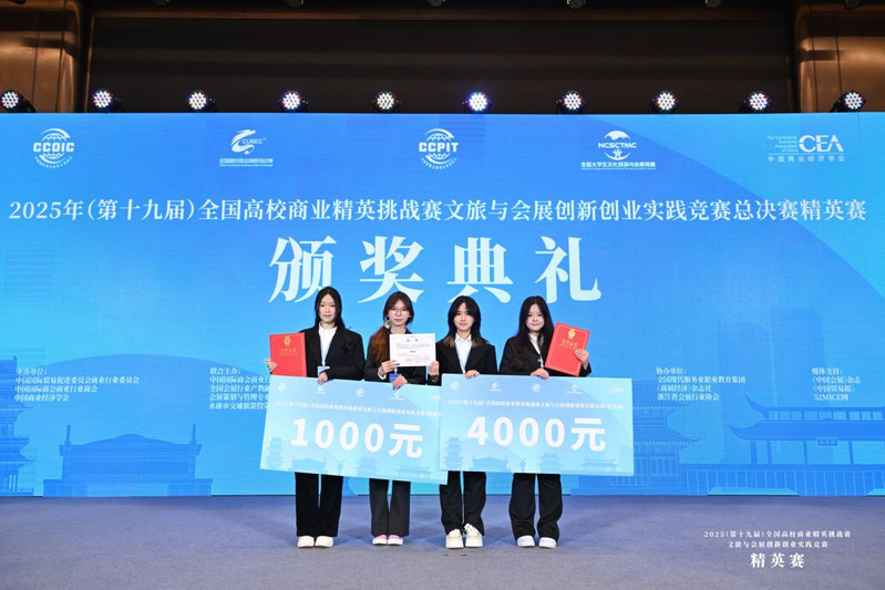 近日,2025年(第十九届)全国高校商业精英挑战赛文旅与会展创新创业实践竞赛全国总决赛精英赛在浙江永康圆满落幕。我校海峡成功学院学子黄思莹、黄欣妍、刘湘婷、林诗雨组成的团队,在指导老师张庆的带领下,凭借新媒体实战营销和作品《星潮赋能、金彩永康——年轻向永康新媒体运营与价值转化总结报告》,荣获旅游目的地新媒体营销赛(永康专项)季军。