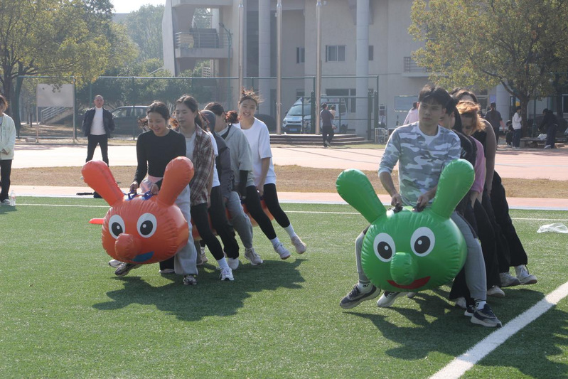 本次运动会以“友谊无国界,运动展风采”为口号,精心设计了兼具趣味性与协作性的个人与集体项目。在个人项目中,“50米布袋跳”与“400米送鸡毛信”不仅考验选手的速度与反应,更融入了文化知识问答环节,增添了智趣色彩。集体项目“三人四足”“春播秋收”“毛毛虫竞速”“运转乾坤”和5分钟跳大绳则充分体现了团队合作的重要性,参赛队员在运动中默契配合、彼此鼓励,展现了良好的集体凝聚力与跨文化沟通能力。