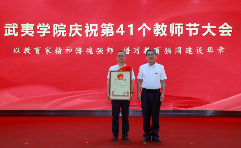校党委书记庄祥生为“福建省科技进步奖”二等奖获得者叶江华老师颁奖