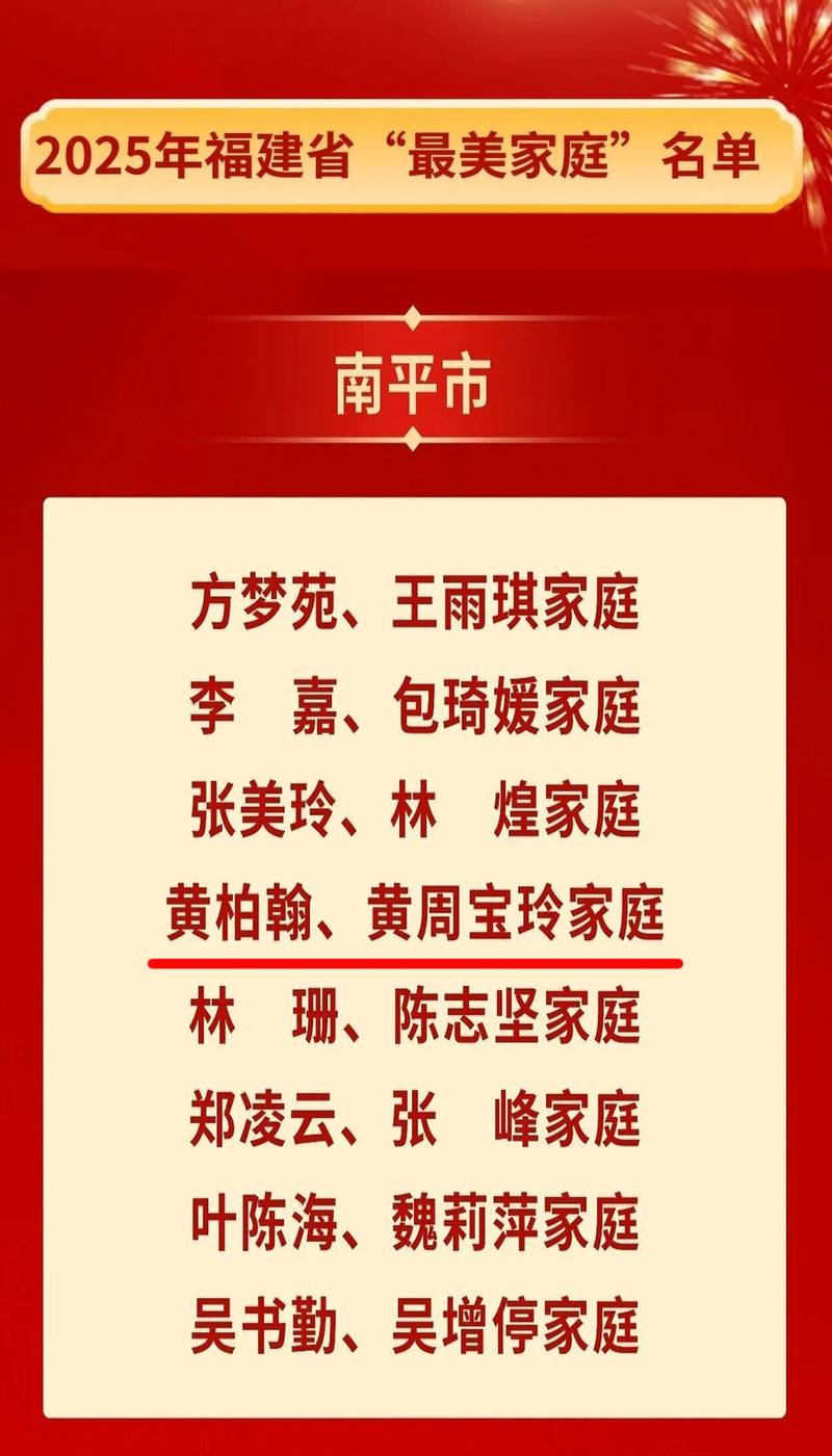 我校黄柏翰、黄周宝玲家庭荣获福建省“最美家庭”称号