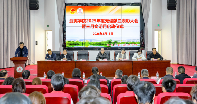 为深入弘扬雷锋精神,深化校园精神文明建设,引导青年学子践行责任担当。3月12日,武夷学院2025年度无偿献血表彰大会暨三月文明月启动仪式在圣农报告厅举行。校党委委员、副校长廖斌,南平市卫健委副主任黄春英出席会议。武夷学院党委组织部、工会、学生工作部、团委,南平市红十字会,南平市中心血站有关负责同志参加。