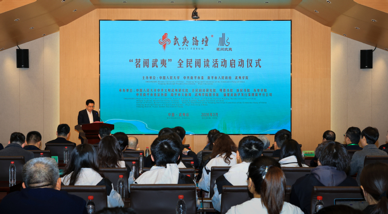 3月21日上午,作为第三届武夷论坛重要组成部分的首届“茗阅武夷”全民阅读品牌活动,在武夷学院正式启动。本次活动由中国人民大学、南平市委市政府、武夷学院联合主办,旨在深入贯彻《全民阅读促进条例》,传承中华优秀传统文化,弘扬革命文化,发展社会主义先进文化,以茶为媒、以书为桥,开启文化与思想交融的精神盛宴。
