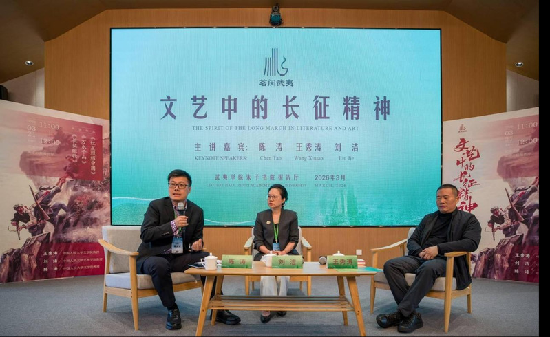 3月21日上午,“茗阅武夷”系列读书会在武夷学院正式拉开帷幕,首场活动“文艺中的长征精神”率先举行。陈涛、王秀涛、刘洁三位学者分别从影视、文学、音乐三个角度,围绕《万水千山》《红星照耀中国》《长征组歌》展开共读共谈,带领现场听众重新理解经典文艺作品中的长征记忆与精神力量。这一场活动既有作品解读,也有现场互动,在阅读与交流中呈现出红色经典跨媒介传播的丰富面向。当天下午,首场红色阅读的余韵未散,第二场主题读书会接续开展,“赤心绘就可爱中国:回望闽浙赣苏区与长征历史”读书会在赤石暴动烈士陵园举行。孙会修、张一帆、张燚明围绕《可爱的中国》,从苏区历史、革命斗争和人物精神等方面展开交流。把阅读活动放在革命遗址现场,也让文字中的历史记忆与现实空间相互映照,使这场读书会更具感染力与现场感。同一时段在武夷山市石上一品茶书院内,另一场聚焦中华历史文化的“回望北宋‘群星闪耀时’”读书会同步举行。赵冬梅、曹家启、朱义群等学者结合《赵宋:如是我见》《大宋之变》《宽容与执拗》等著作,从北宋政治、制度与士人精神等角度切入,引导读者走近宋代历史,感受宋代文明的复杂面貌与思想光彩。