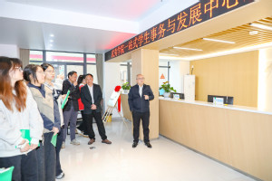仪式现场,廖斌为“一站式”学生事务与发展中心揭牌。与会人员共同参观体验了“一站式”学生事务与发展中心服务大厅和特色功能室。